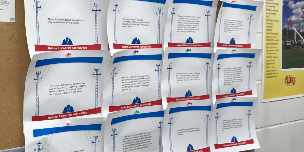 Each year on April 18 we recognize National Lineworker Appreciation Day. We asked our customers to join in on the celebration again this year to help thank the people behind our power. We truly appreciate your kindness — it brought a smile to the faces of our crews. Below is a small sampling of the kind messages you shared: