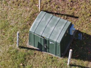 “Something just didn’t look right as we flew over a primary metering underground cabinet,” said Technician Principal and drone pilot Ryan Coon. “When I took a closer look through the drone, I noticed the left cabinet door ajar, but the lock was still in place.”