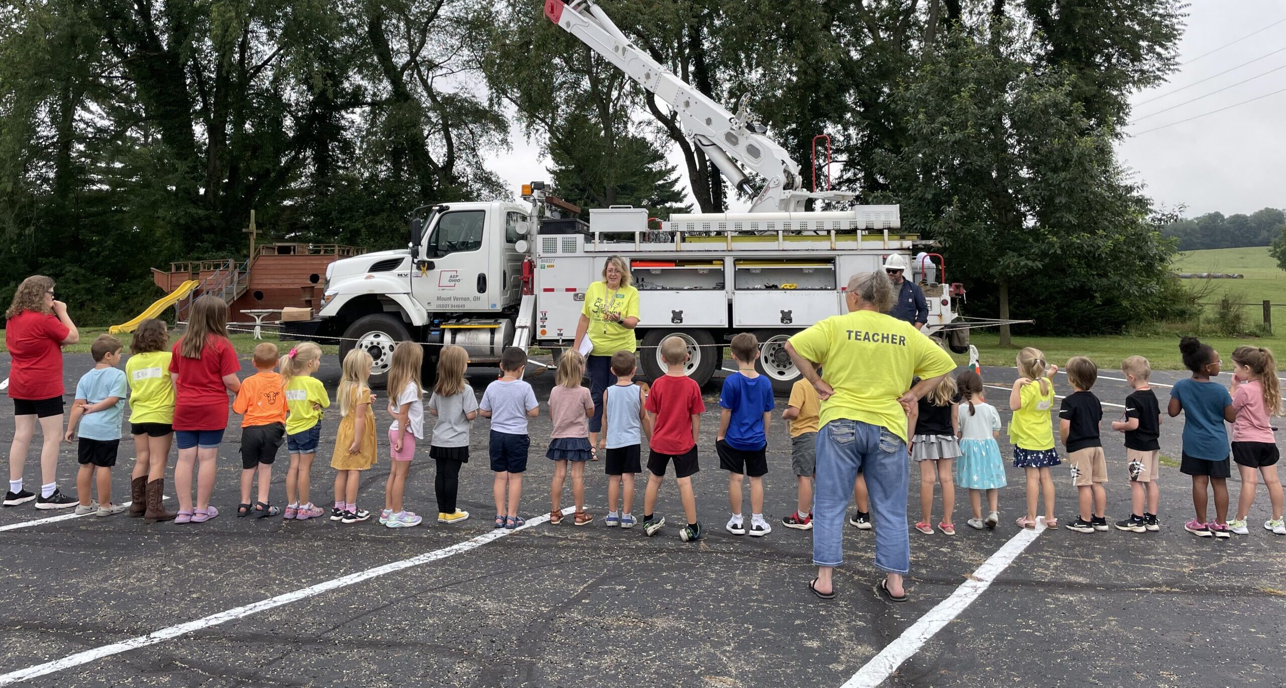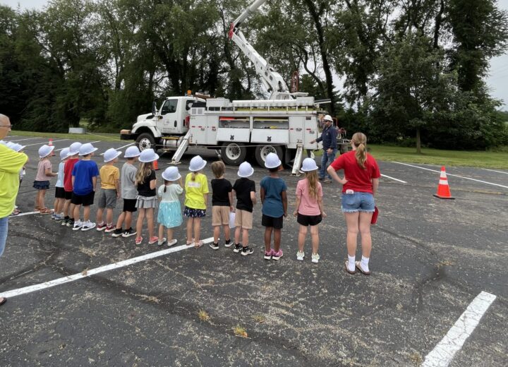 “We explained to the kids about how to stay away from any downed line and never touch anything it may be touching,” said Patrick Simpson, business services account manager. “We also demonstrated the shuffle to get away from a down line and provided all of the little ones their own AEP ‘hard hat,’ which is always a big hit!”
