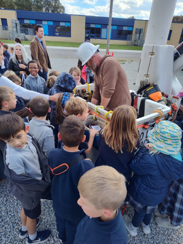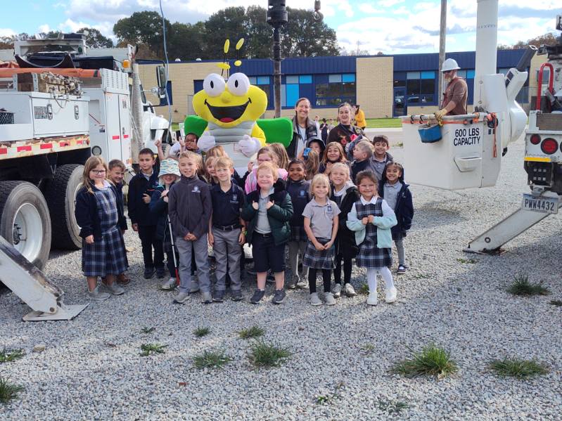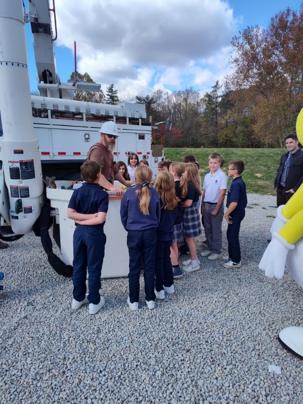 In October, employees provided bucket truck rides for children and talked about electrical safety Southeast Ohio Classical Academy in Logan.