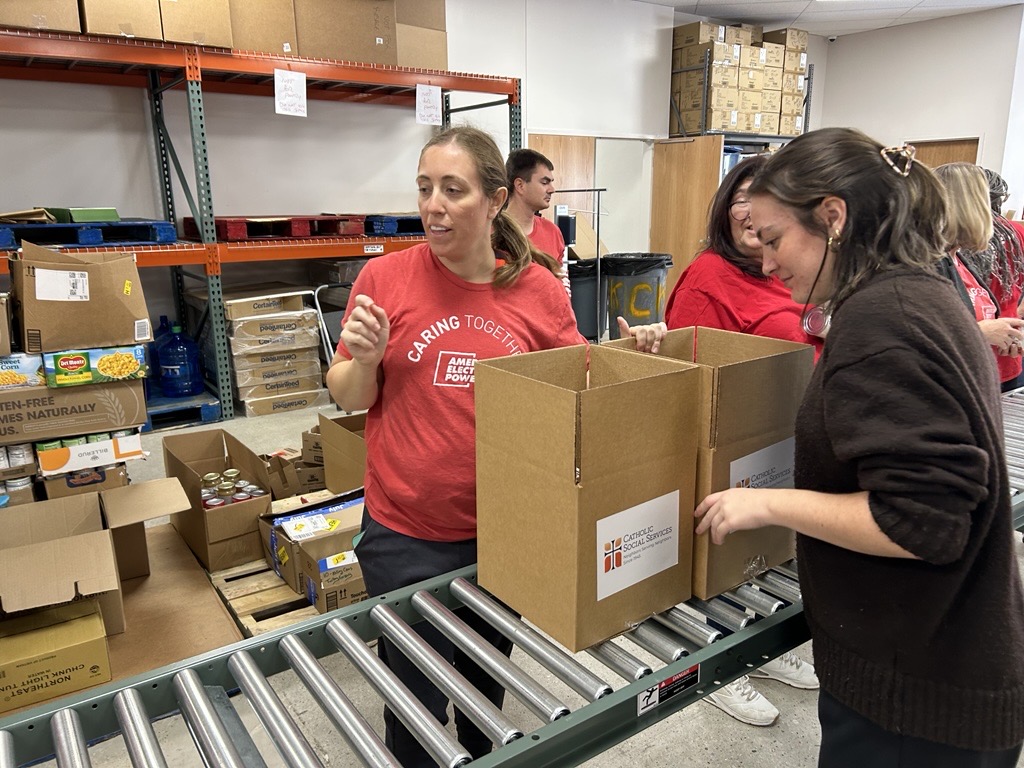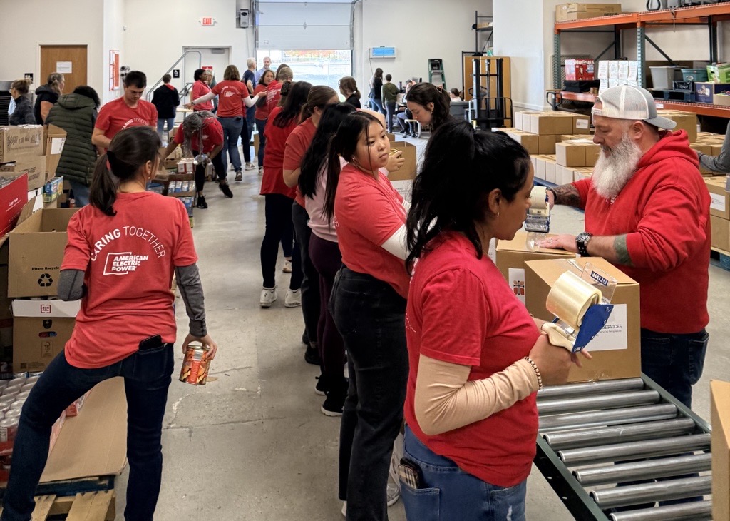 Neighbors Serving Neighbors: “Together, we are neighbors serving neighbors.” That’s the motto of food pantry and social services agency Our Lady of Guadalupe Center (OLGC), and it was fully on display a few weeks before Thanksgiving when about 25 AEP employees rolled up their sleeves to help pack boxes during the organization’s “Everything But The Turkey” event. AEP employees formed an assembly line in the warehouse, which was filled with thousands of canned and boxed food items ready to become Thanksgiving meals. The goal was to pack 500 boxes, enough to help feed about 2,000 people in need. The AEP team accomplished that in less than two hours.