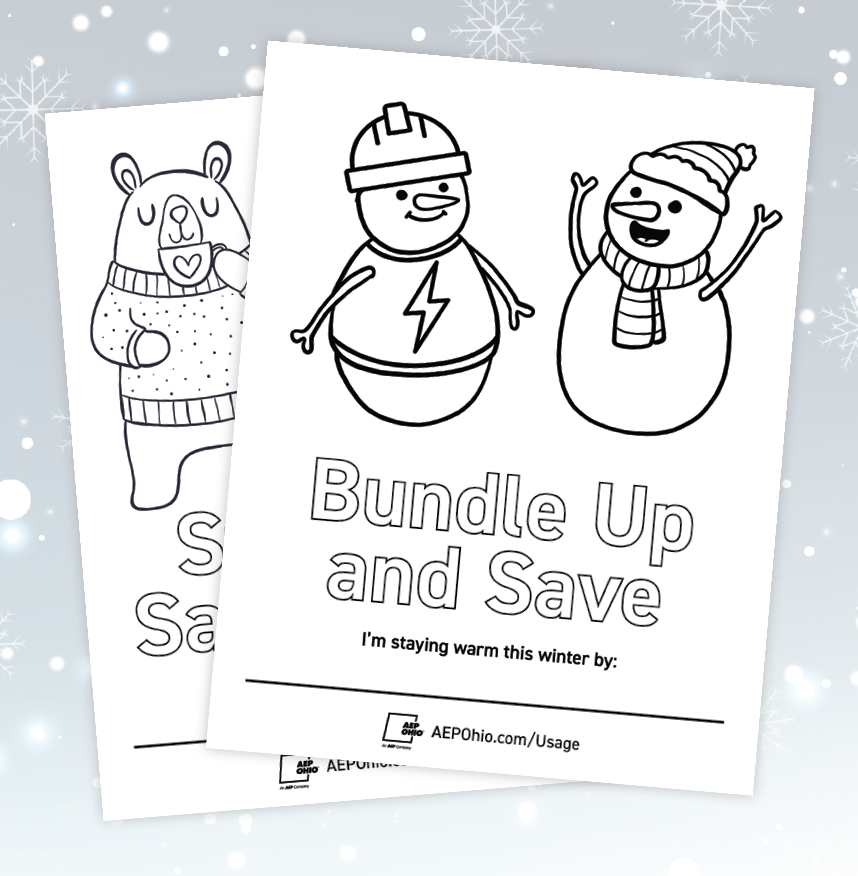 Post a photo of your coloring sheet on social media with #StayCozySaveEnergy and tag @AEPOhio. Happy coloring!
